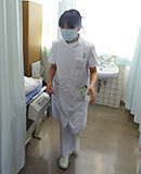 手術を受けられる患者さんを手術室まで送ります。 患者さんはとても不安です。患者さんを励まし、見送ります。医師や手術室スタッフは安全な手術に全力を注ぎます。 |