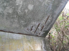 ※鉄筋の露出や遊離石灰等が発生しているものの橋梁の破壊につながる損傷ではないことまた橋桁下を道路が交差や併行していないため交通にも支障がないことから計画策定までの間は、管理点検を行っていき、損傷の把握に努める。
