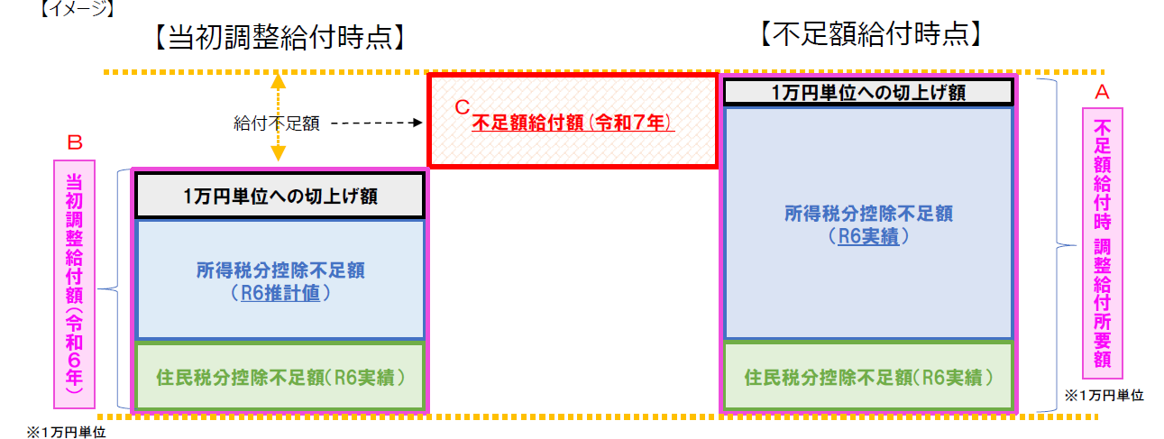 ※ 本ページ内では、令和7年度に実施する定額減税補足給付金(不足額給付)を「不足額給付」といい、令和6年度に実施した定額減税補足給付金(調整給付)を「当初調整給付」と言います。