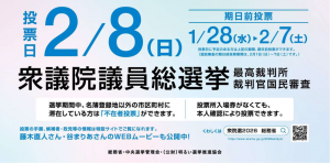 ※1月28日(水曜日)~1月31日(土曜日)の間は、最高裁判所裁判官国民審査期日前投票はできませんので、ご注意ください。