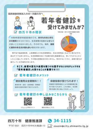 市では、国民健康保険に加入している30~39歳の方を対象に若年者健診を行っています。